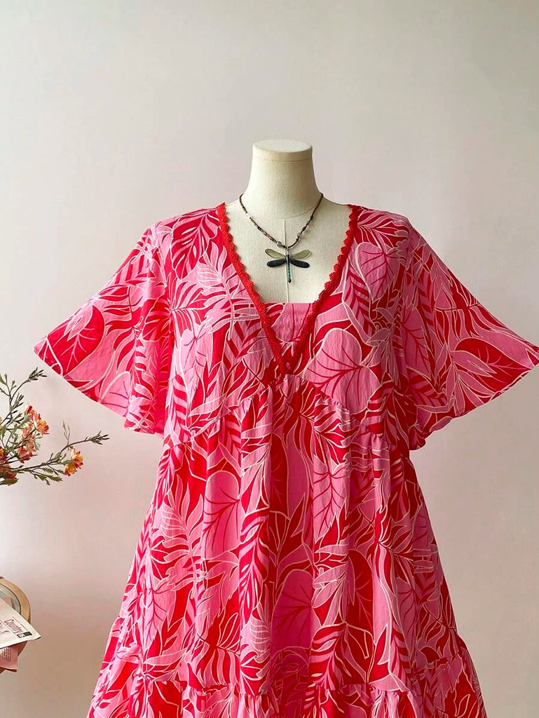 PLUS SIZE Kalea Midi Dress - Pink/Red