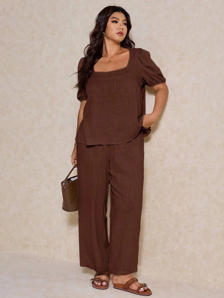 PLUS SIZE Novo Pant & Top Set - Coffee