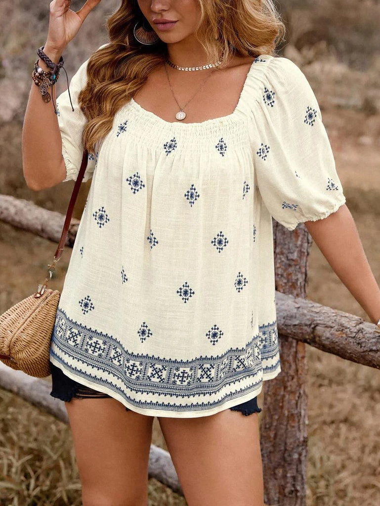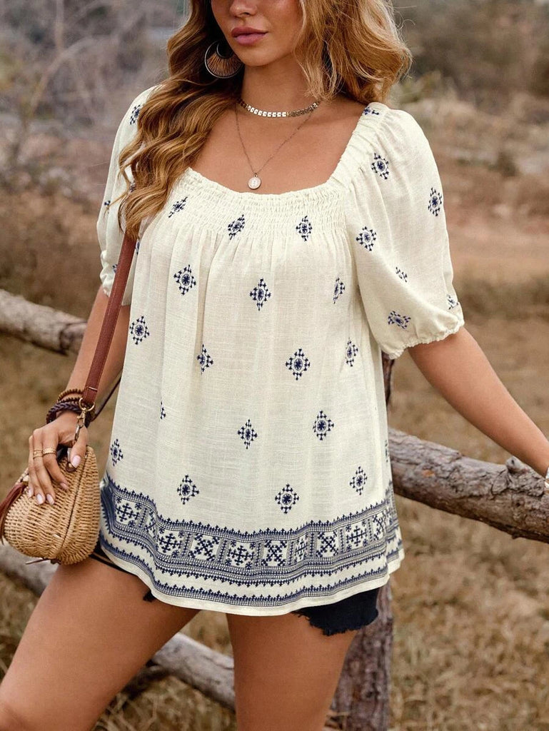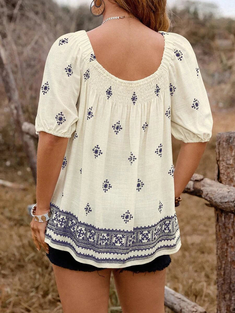 • Cream viscose top with navy print