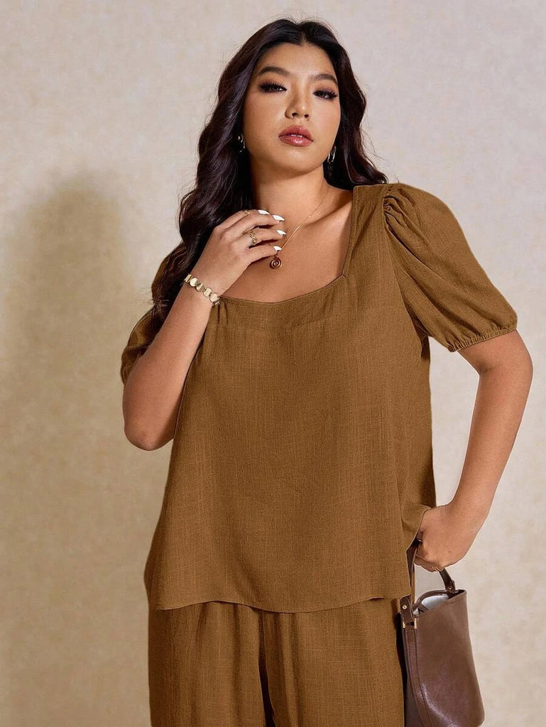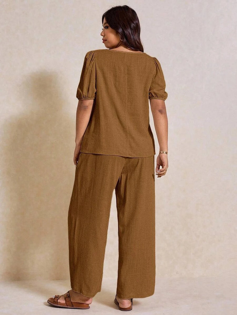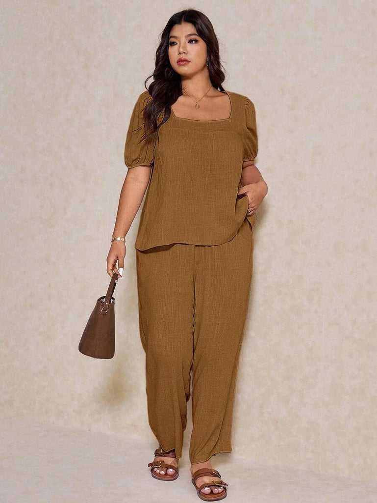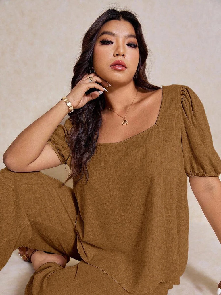 - Plus size Novo pant and top set in ginger brown