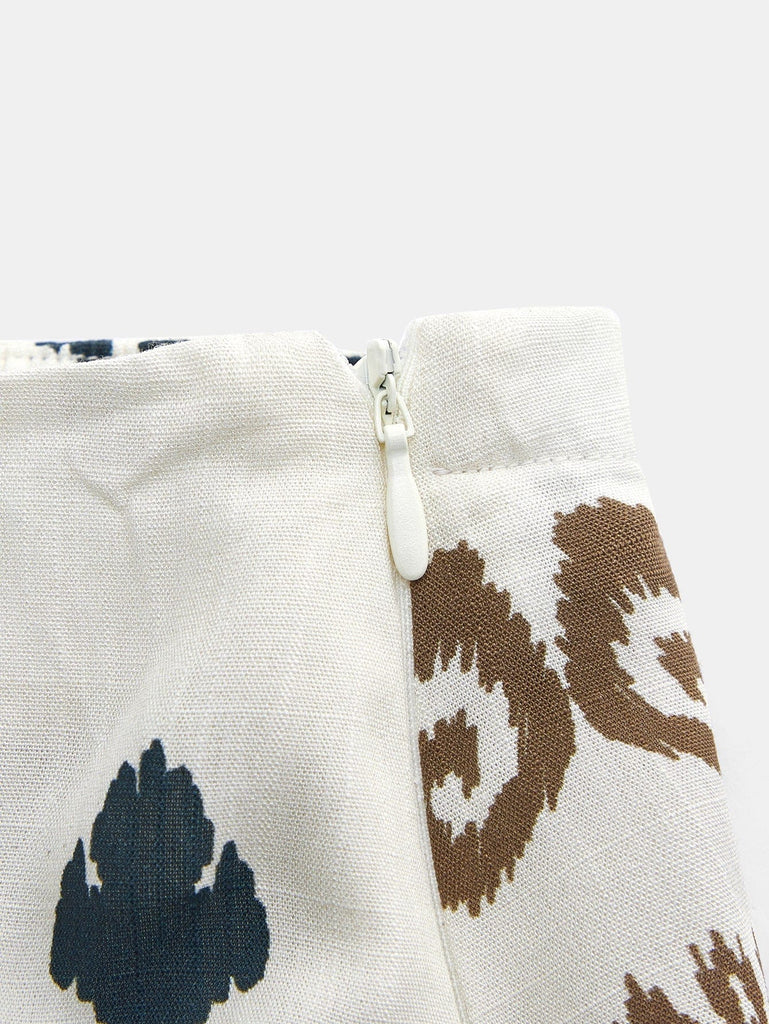 - Skirt has a flat panel at front waist, a side zipper and the back waist is elasticised